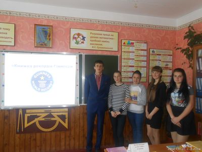 Захід був змістовним і цікавим. Розповіли про історію виникнення Книги рекордів Гіннеса, про державний реєстр рекордів України. Переглянули відео ролик «10 дивних рекордів України», «Перемоги України. Досягнення українців, які увійшли у книгу рекордів Гіннеса». Учні розповіли і показали презентацію про дитячі рекорди України.